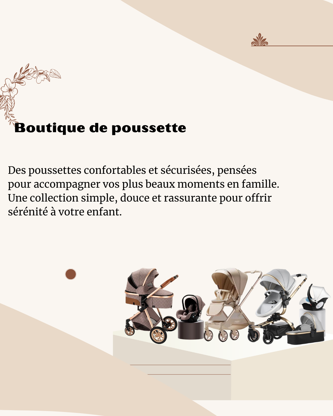 Découvrez la solution pratique qui simplifie vos sorties avec bébé? La poussette Multifonctionnelle elegant répond à tous vos besoins quotidiens avec style et intelligence. Fini les multiples sacs et accessoires encombrants! Cette poussette révolutionne votre expérience parentale en combinant mobilité et fonctionnalités essentielles dans un design épuré. Imaginez-vous vous déplacer avec élégance et légèreté, tout en ayant l'essentiel à portée de main pour votre tout-petit.